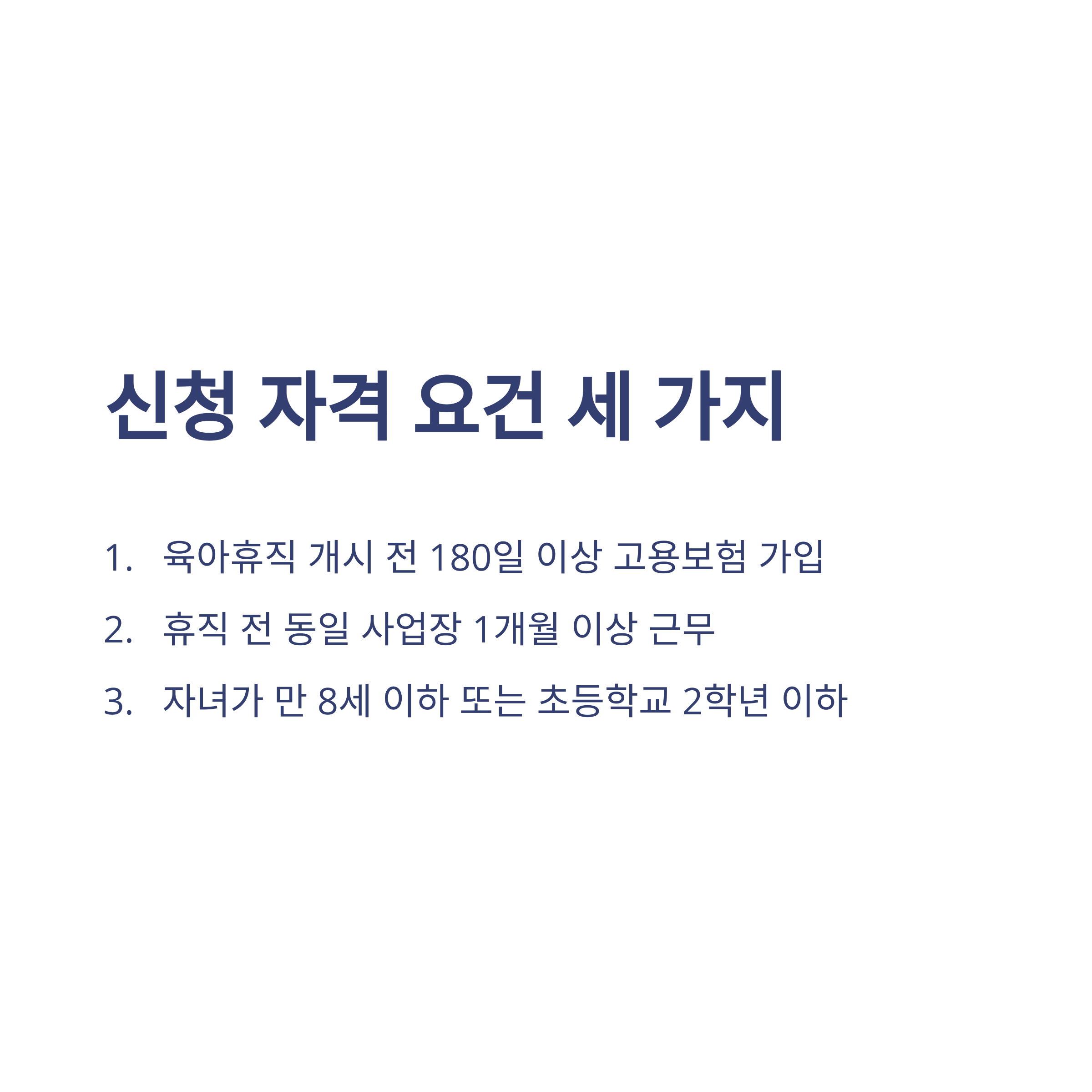 육아휴직급여를 받기 위해서는 세 가지 주요 자격 요건을 모두 충족해야 합니다. 첫째, 육아휴직 개시일 전 180일 이상 고용보험에 가입되어 있어야 합니다. 제가 실제로 신청 전 인사팀에 가입 기간을 확인했던 경험을 회상하면, 보험 가입 기간이 179일로 표시되어 급히 재설계를 요청했던 나날이 기억납니다. 둘째, 육로자 본인이 휴직 신청 전 동일 사업장에서 1개월 이상 근무해야 하며, 이 기간 역시 연속성이 인정됩니다. 셋째, 육아휴직 대상인 자녀가 만 8세 이하 또는 초등학교 2학년 이하에 해당해야 합니다. 이 자격 중 어느 하나라도 미달하면 육아휴직급여 신청 자체가 불가능하므로, 반드시 고용노동부 육아휴직급여 안내를 통해 본인의 가입 상태와 자격 요건을 사전에 꼼꼼히 확인해 보시길 권장합니다.