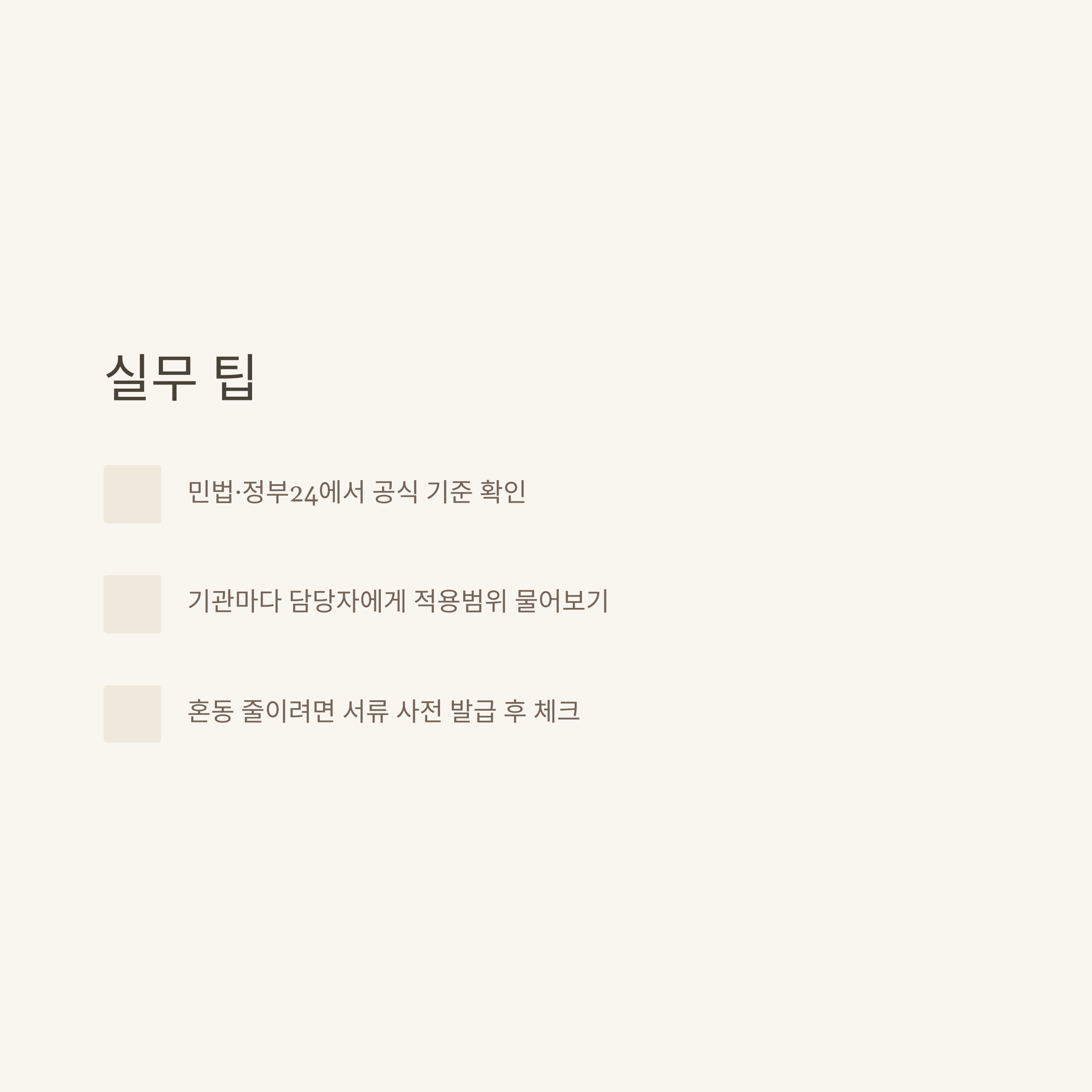 | 실무 팁 | 기관별 범위 확인, 서류 기준 꼼꼼히 체크 필수 | 공식사례 |