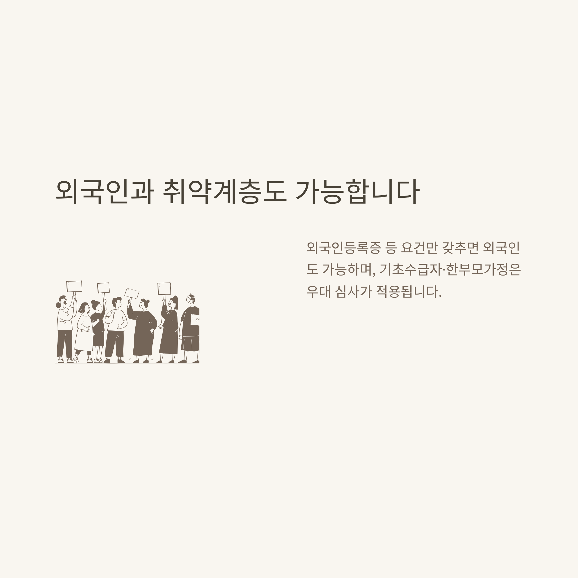 | 한부모가정·장애인 등 | 관련 증빙서류 | 특별 심사, 우대제도 있음 |