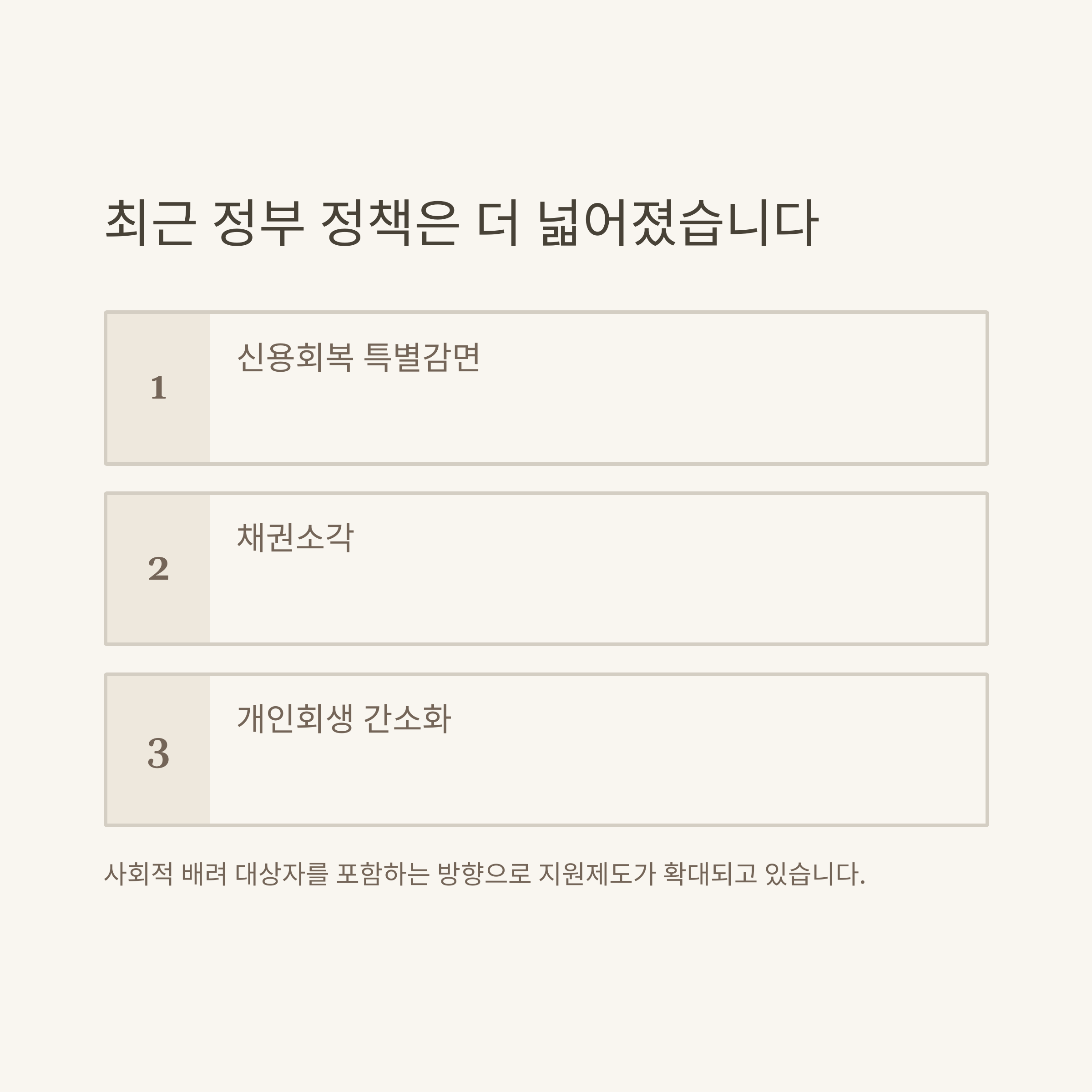 | 개인회생 간소화 | 취약계층·고령자 우대, 제출서류 간소화 | 법원 |