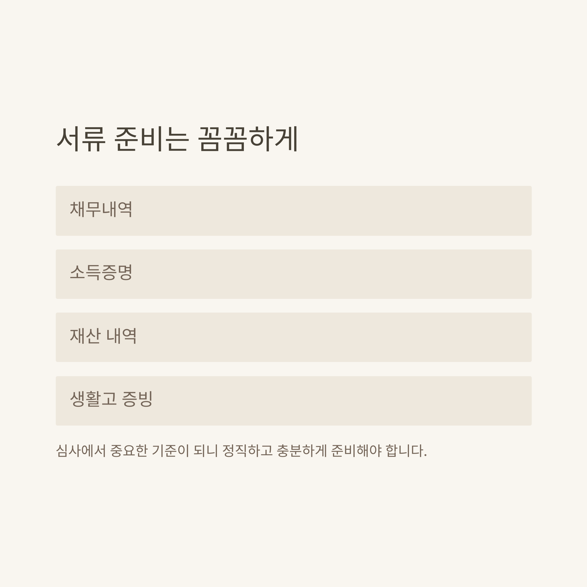 | 채무내역 확인서 | 금융기관·신용정보원 등에서 발급 |