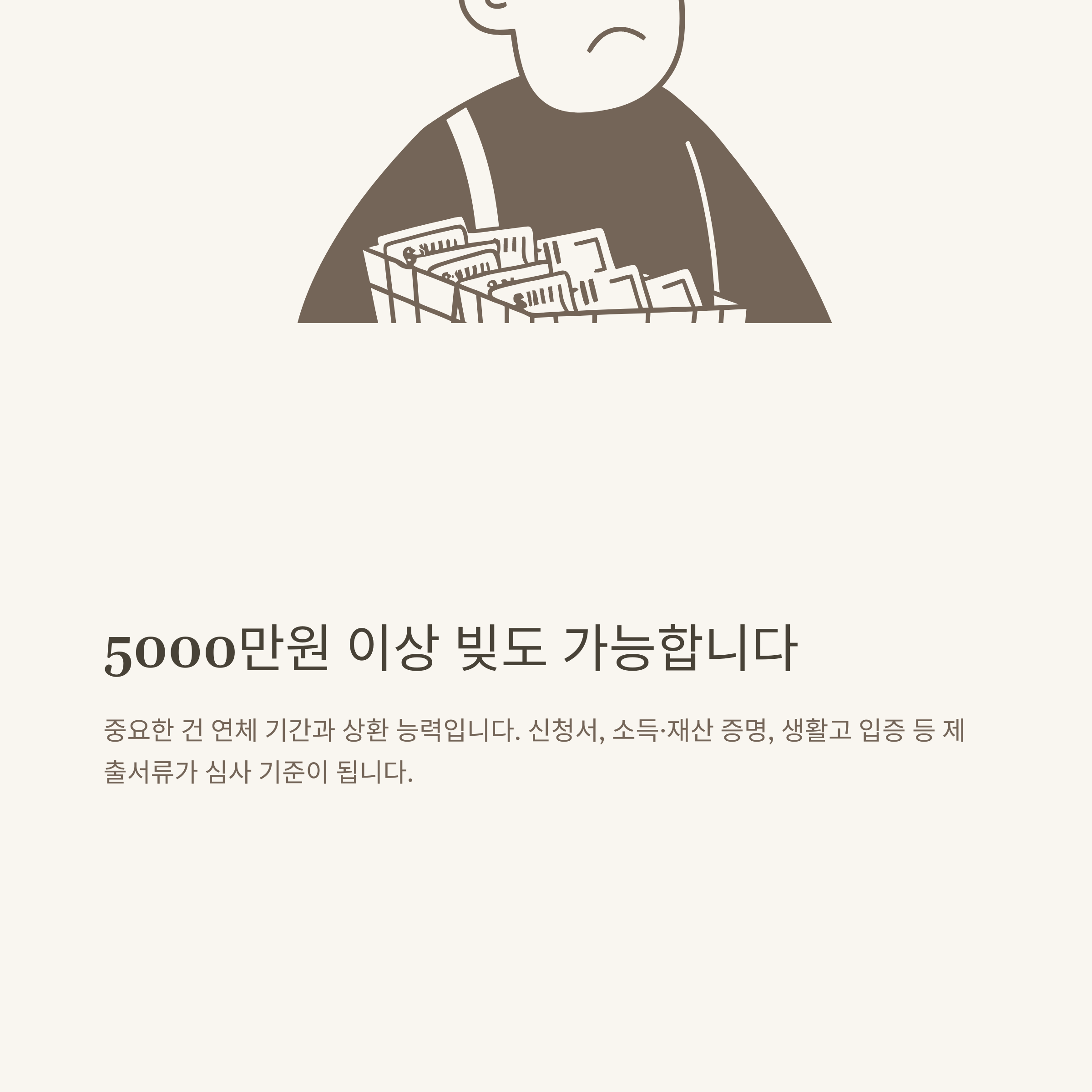 | 채무 금액 | 5000만원 이상 가능 | 신청서·소득증명 등 제출 |