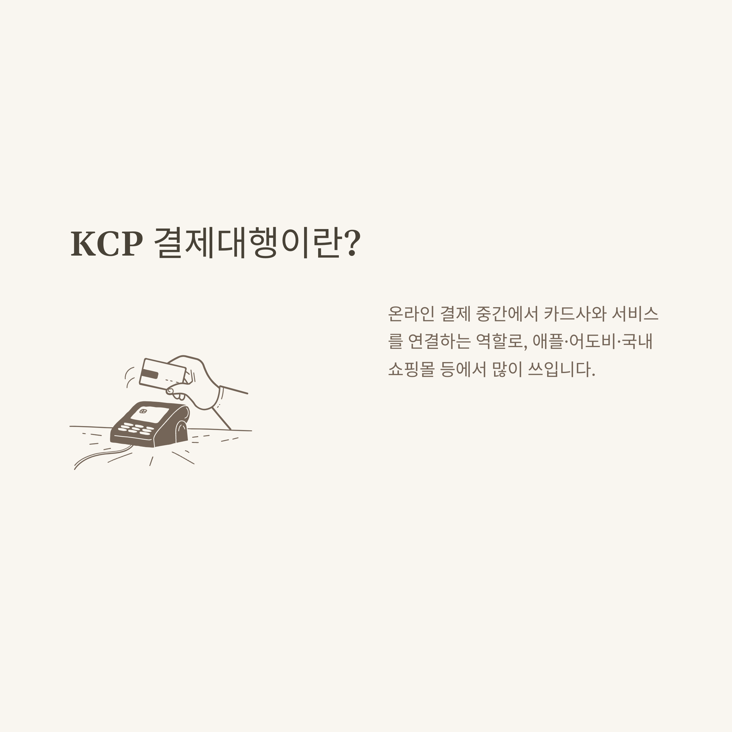 KCP는 국내 PG사(결제대행) 중 하나로, 네이버페이, 쿠팡, 인터파크, 11번가, 어도비, 애플 등 다양한 플랫폼에서 쓰이고 있습니다. 실제 결제·환불·취소·자동결제 등에서 KCP 이름이 찍히는 건, PG사가 결제처리를 맡고 있기 때문입니다.