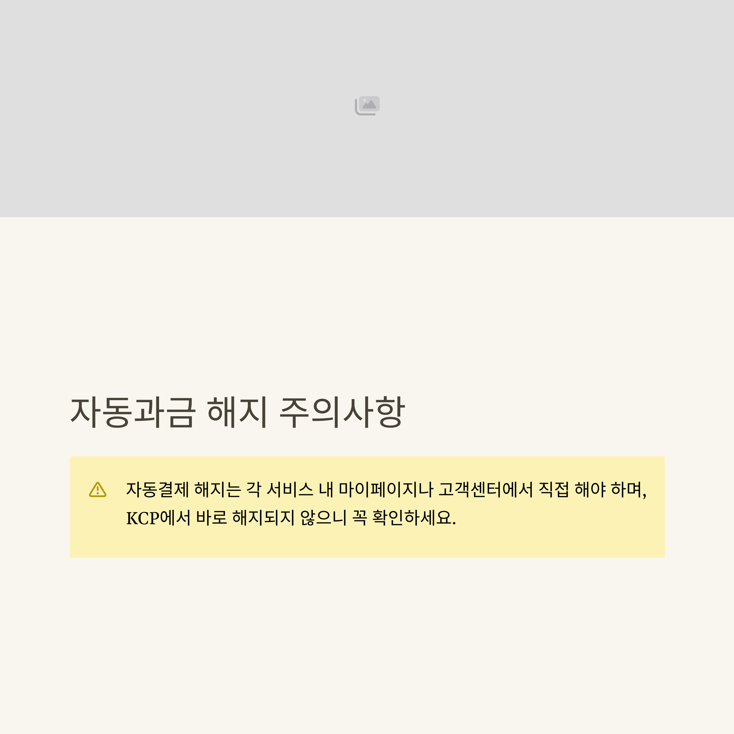 자동과금 해지는 반드시 각 서비스(앱/웹사이트/소프트웨어) 마이페이지나 고객센터에서 직접 신청해야 하며, KCP에서 바로 해지되는 것이 아닙니다. 해지 신청 후 정상적으로 결제중단이 처리됐는지 결제내역, 문자, 이메일 등을 꼭 확인하세요.