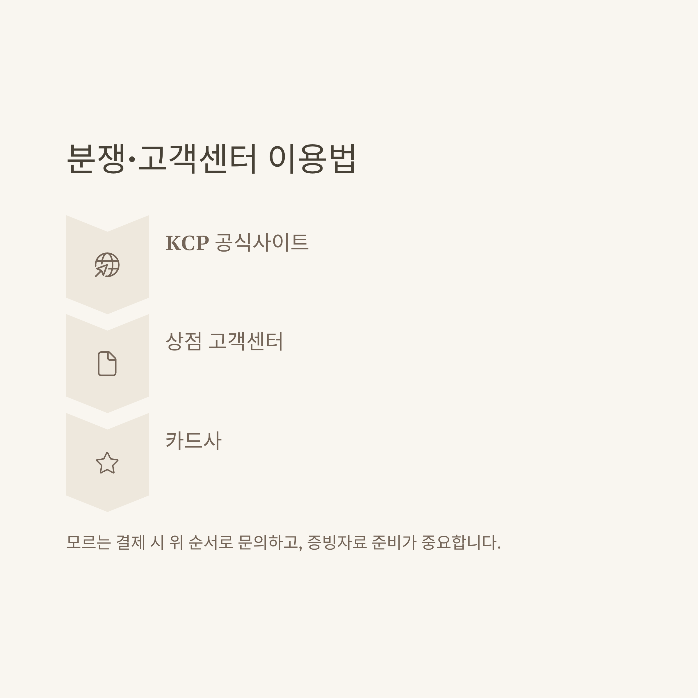 모든 단계에서 결제내역(승인번호, 금액, 일시 등)과 증빙자료(캡처, 문자, 이메일 등)를 미리 준비해두면 상담이 훨씬 빠르고 명확합니다.